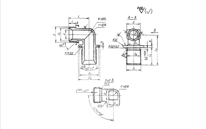 Пример условного обозначения фланцевого угольника к трубопроводу Д, 16 из