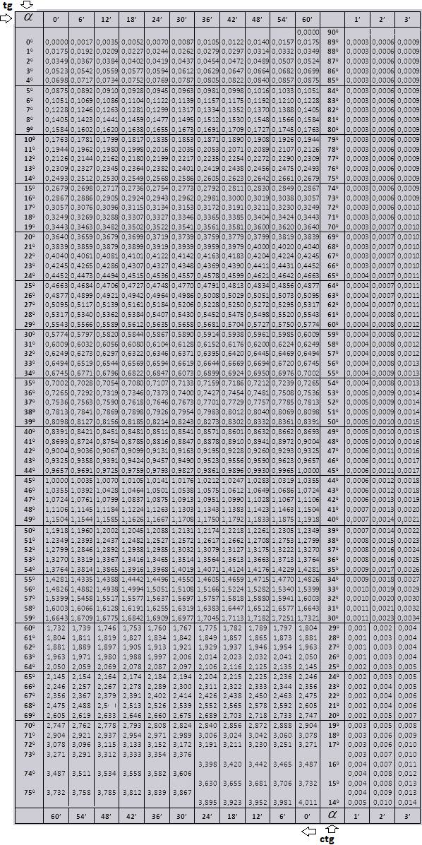 таблица брадиса